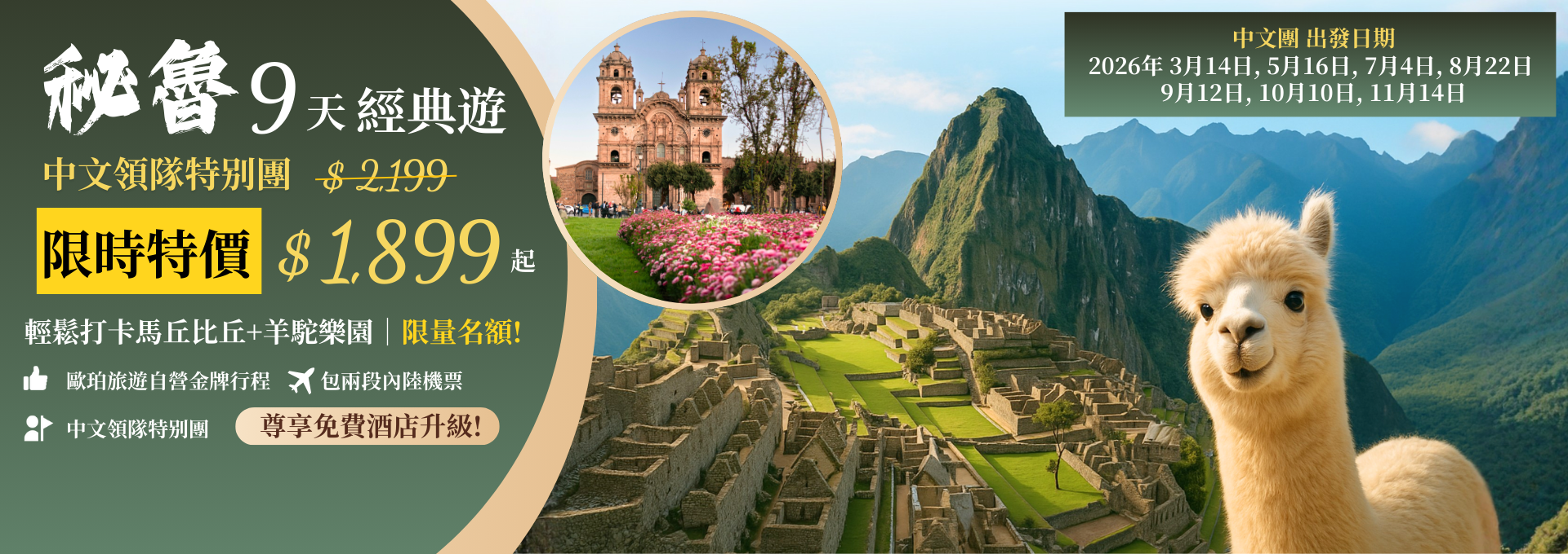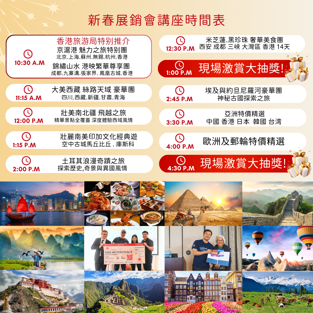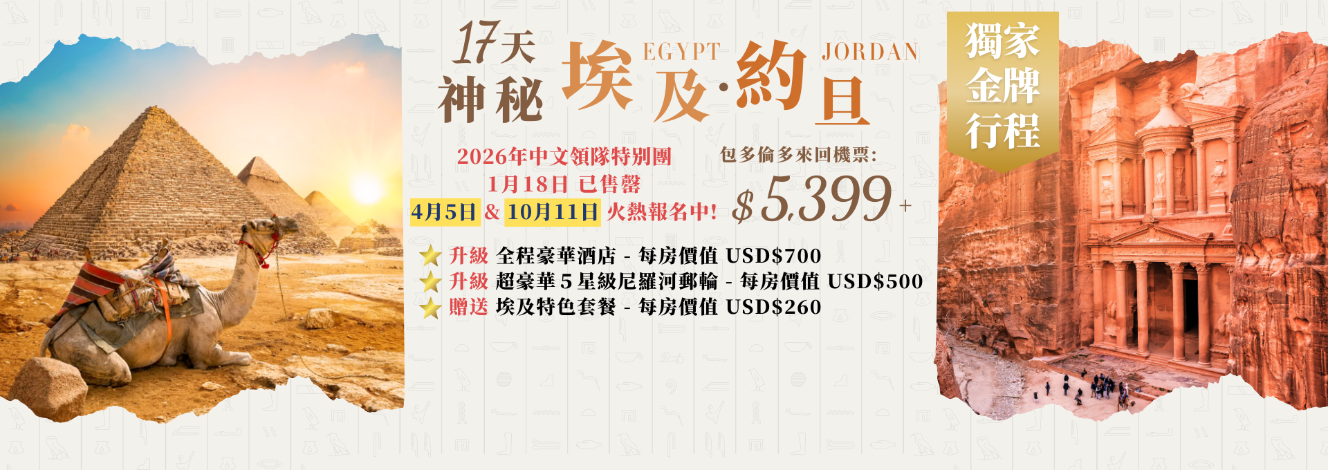 全包套餐包括機票、當地遊覽、郵輪、門票和膳食,提供最具競爭力的價格和最佳價值。