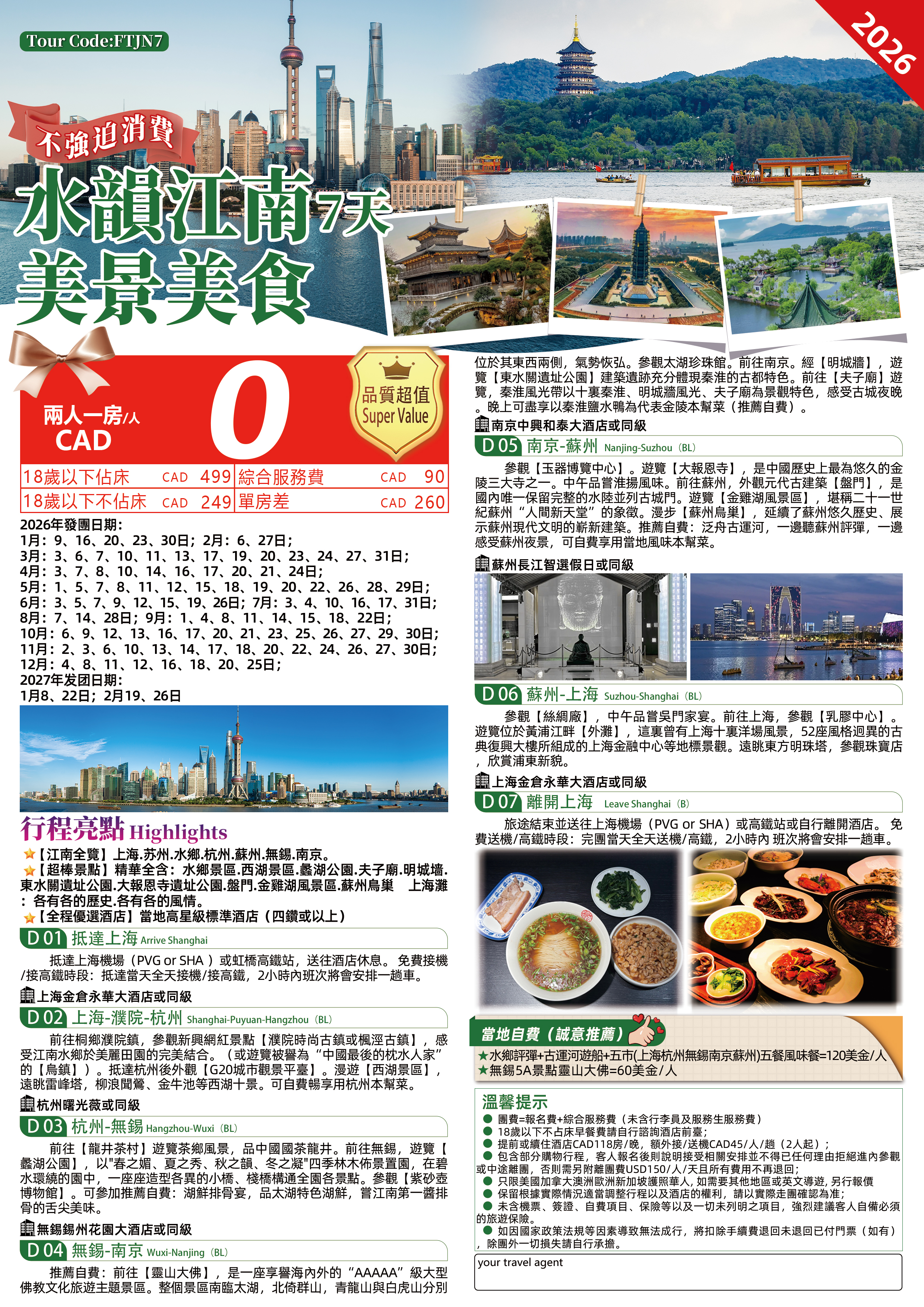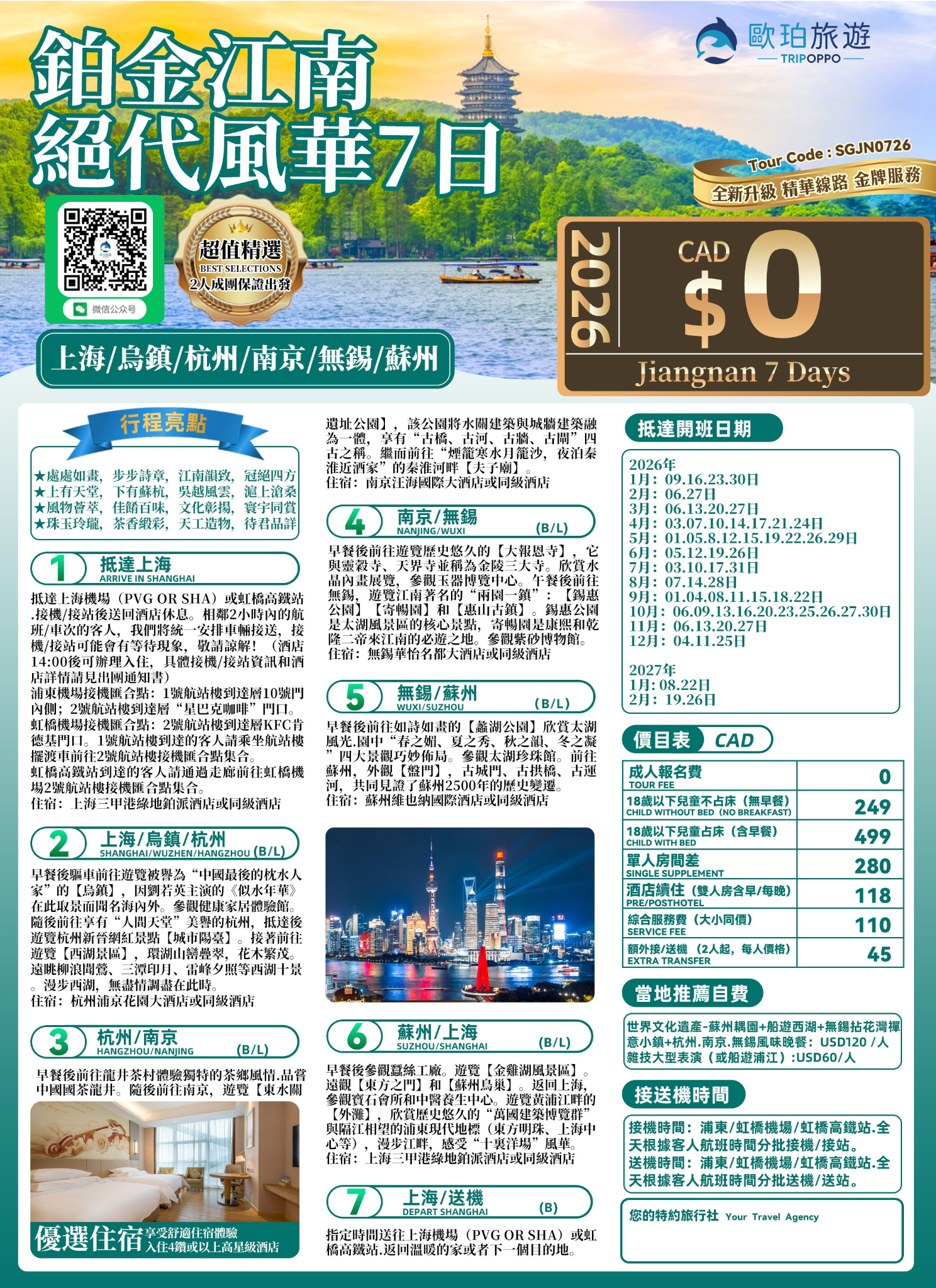 【江南全覽】上海.烏鎮.杭州.蘇州.無錫.南京。
