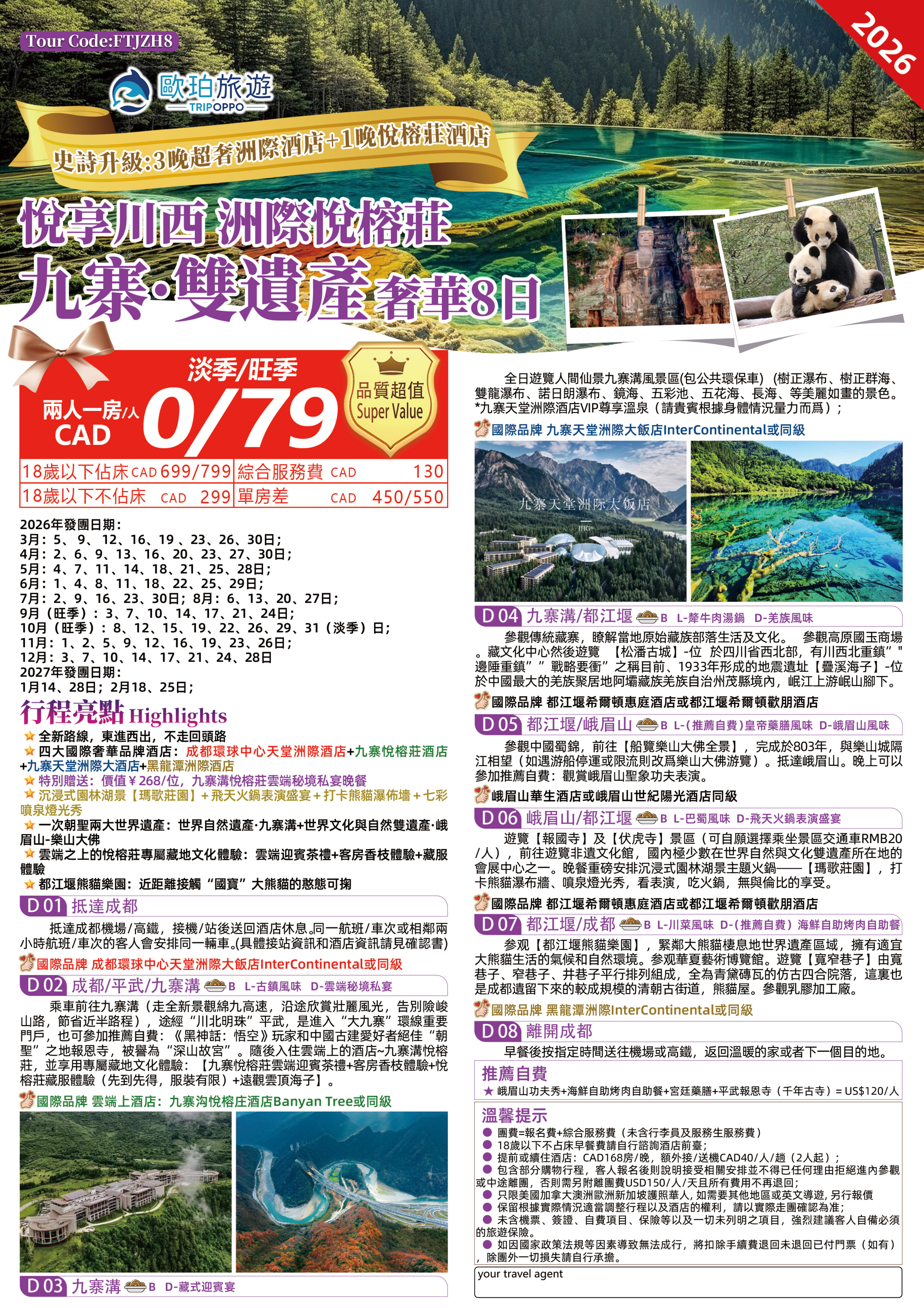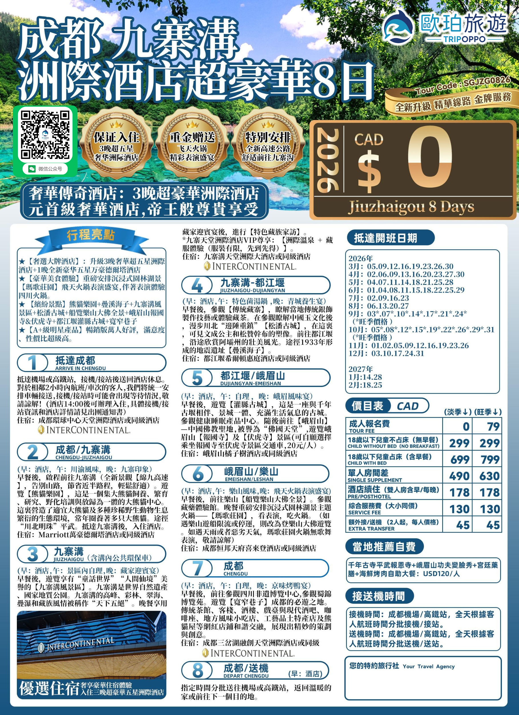 詳情請致電:905-604-6488 Email:cntours@tripoppo.com
