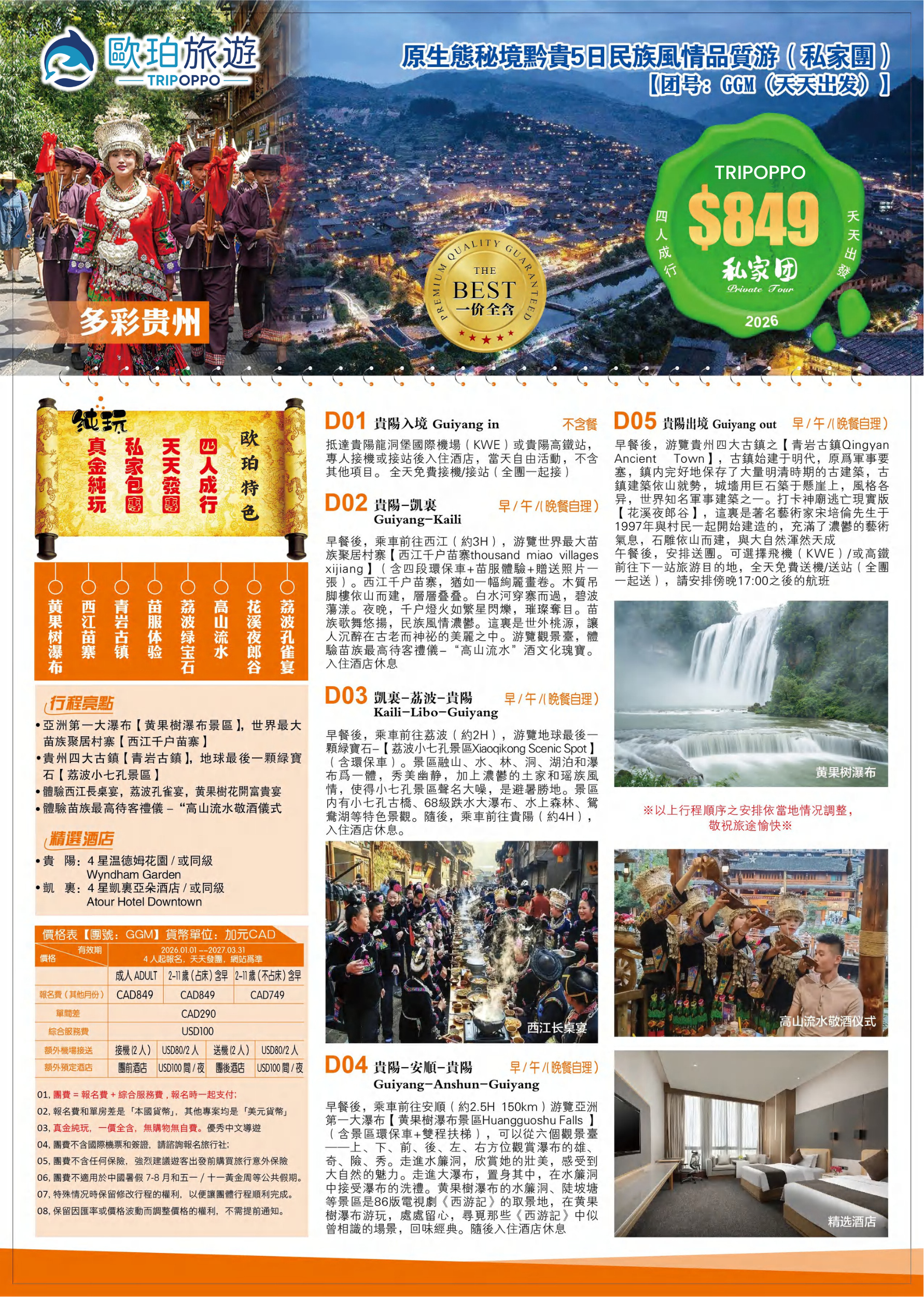 詳情請致電:905-604-6488 Email:cntours@tripoppo.com