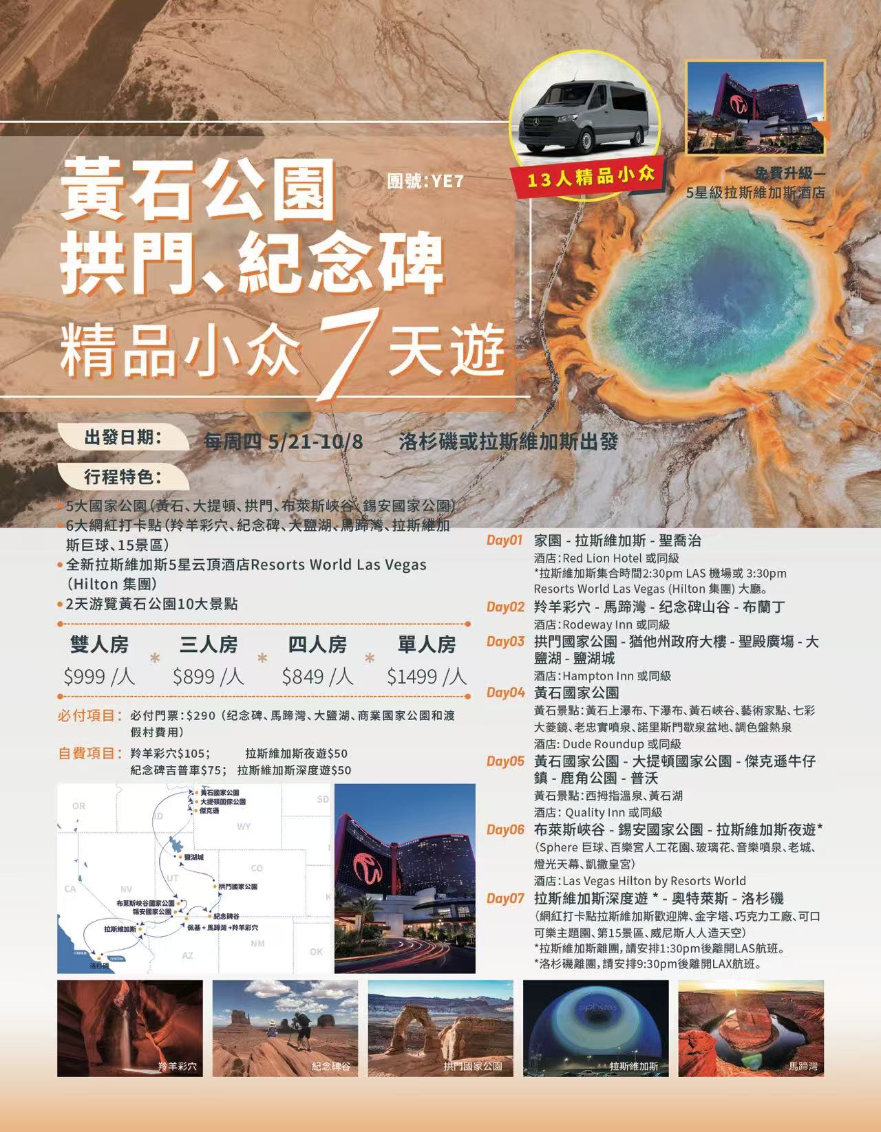 美國 黃石公園 拱門 紀念碑7天(13人精品小眾團)