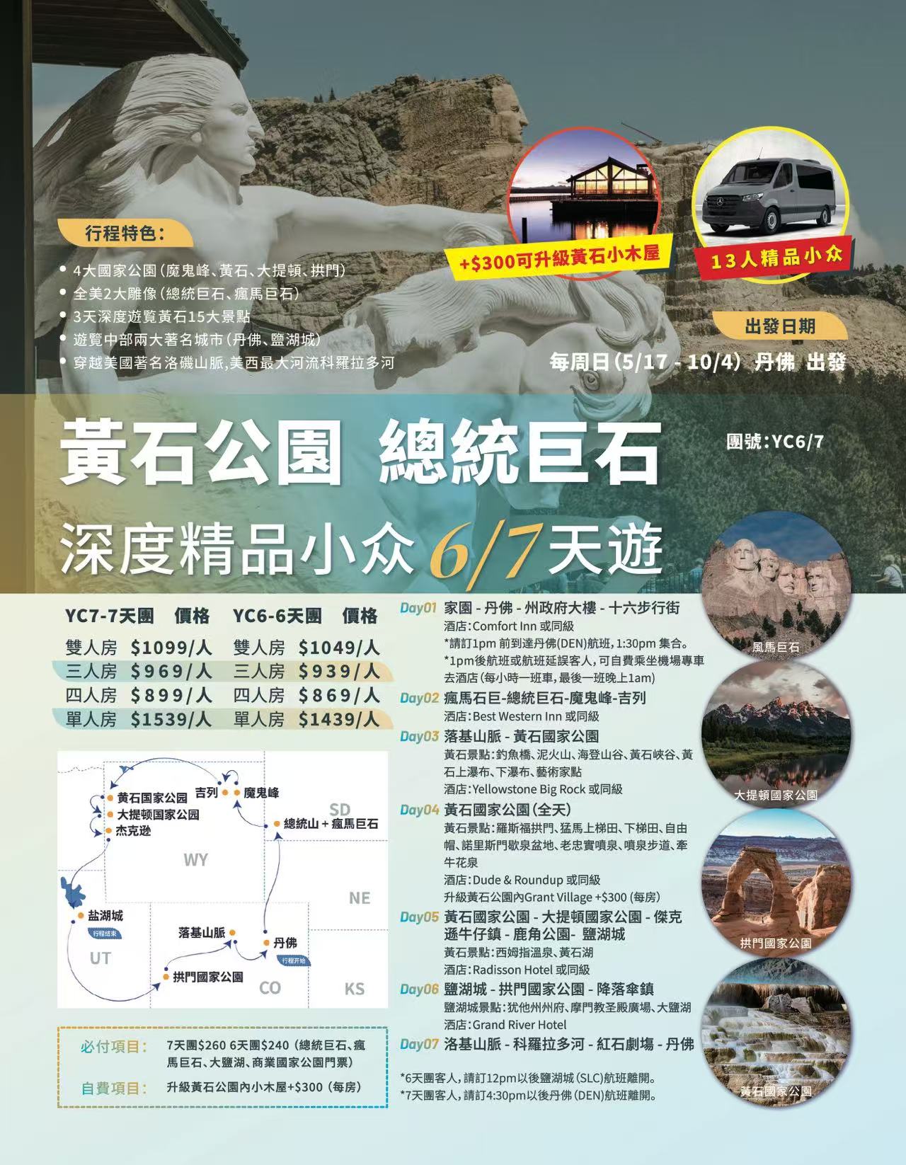 全线美西及黄石公园 系列产品 四月底前報名: 全年出發日期 均享 10%OFF 优惠