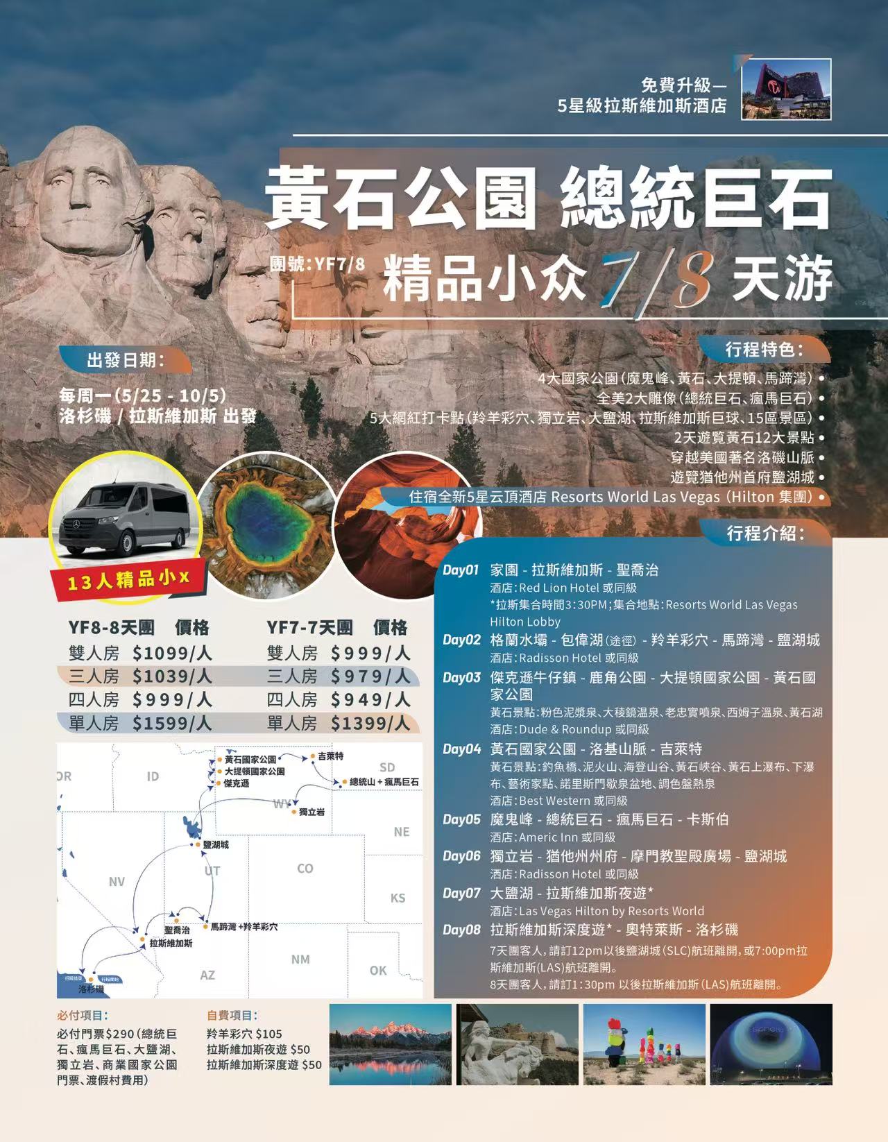 美國 黃石公園 總統巨石 7/8天(13人精品小眾團)