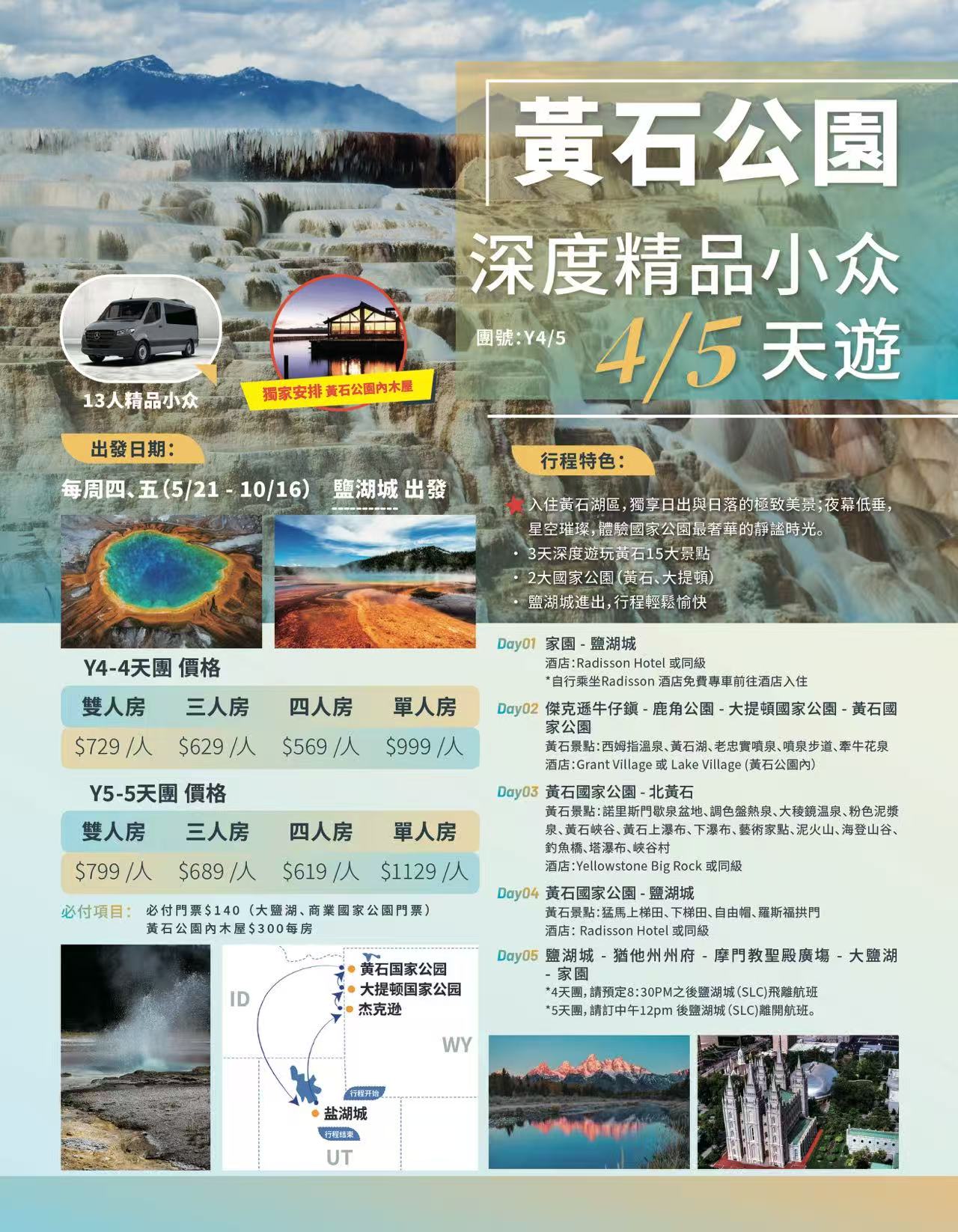美國 黃石公園 深度遊4/5天(13人精品小眾團)