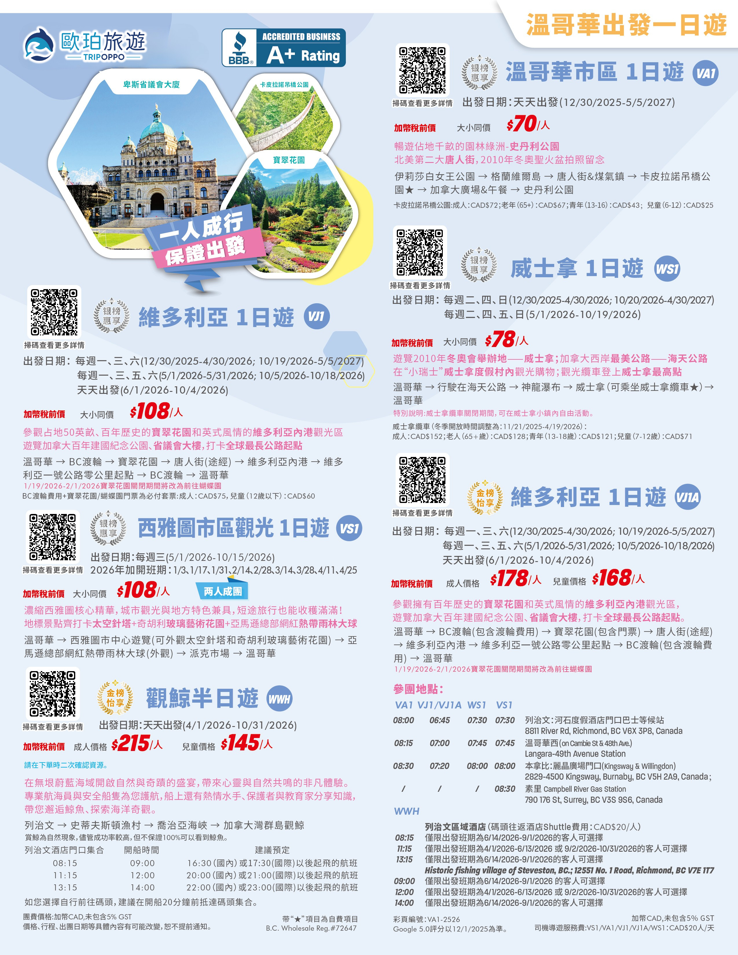 VJ1: 維多利亞一日遊 $108 起