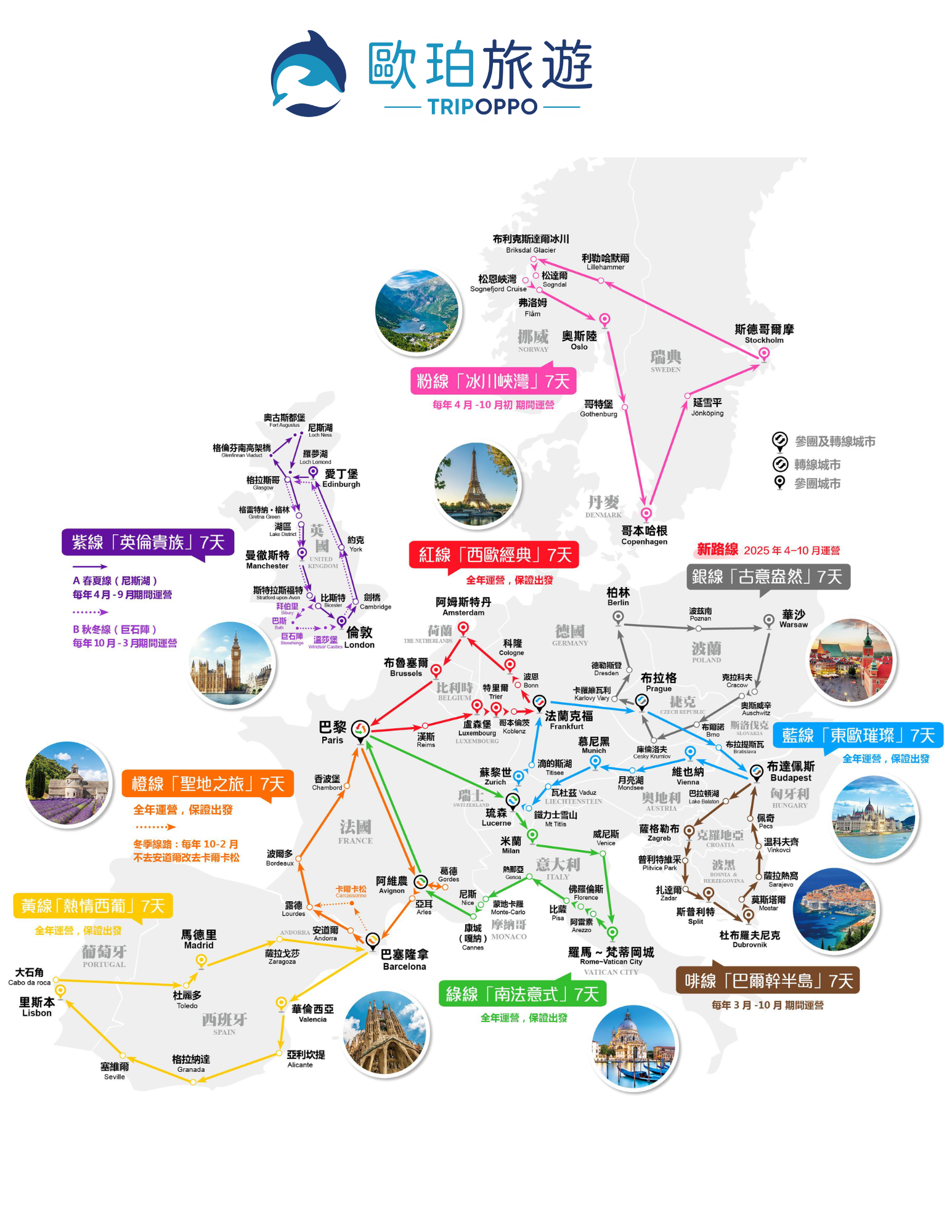 以上路線包含: 酒店、機埸接送、當地 國/粵 雙語領導、歐陸式早餐