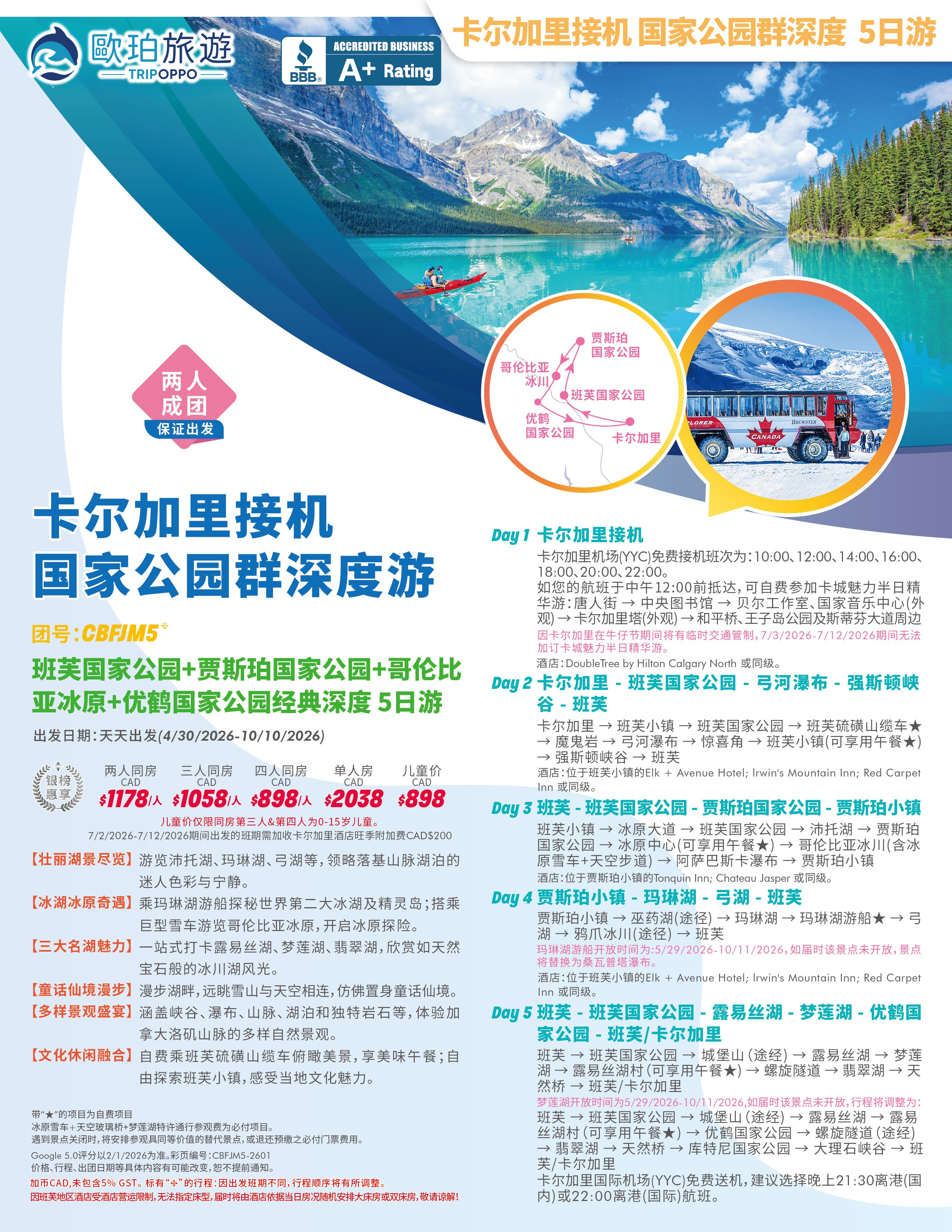 涵蓋峽谷、瀑布、山脈、湖泊和獨特岩石等多種自然景觀,短時間內體驗加拿大洛磯山脈壯麗風光。