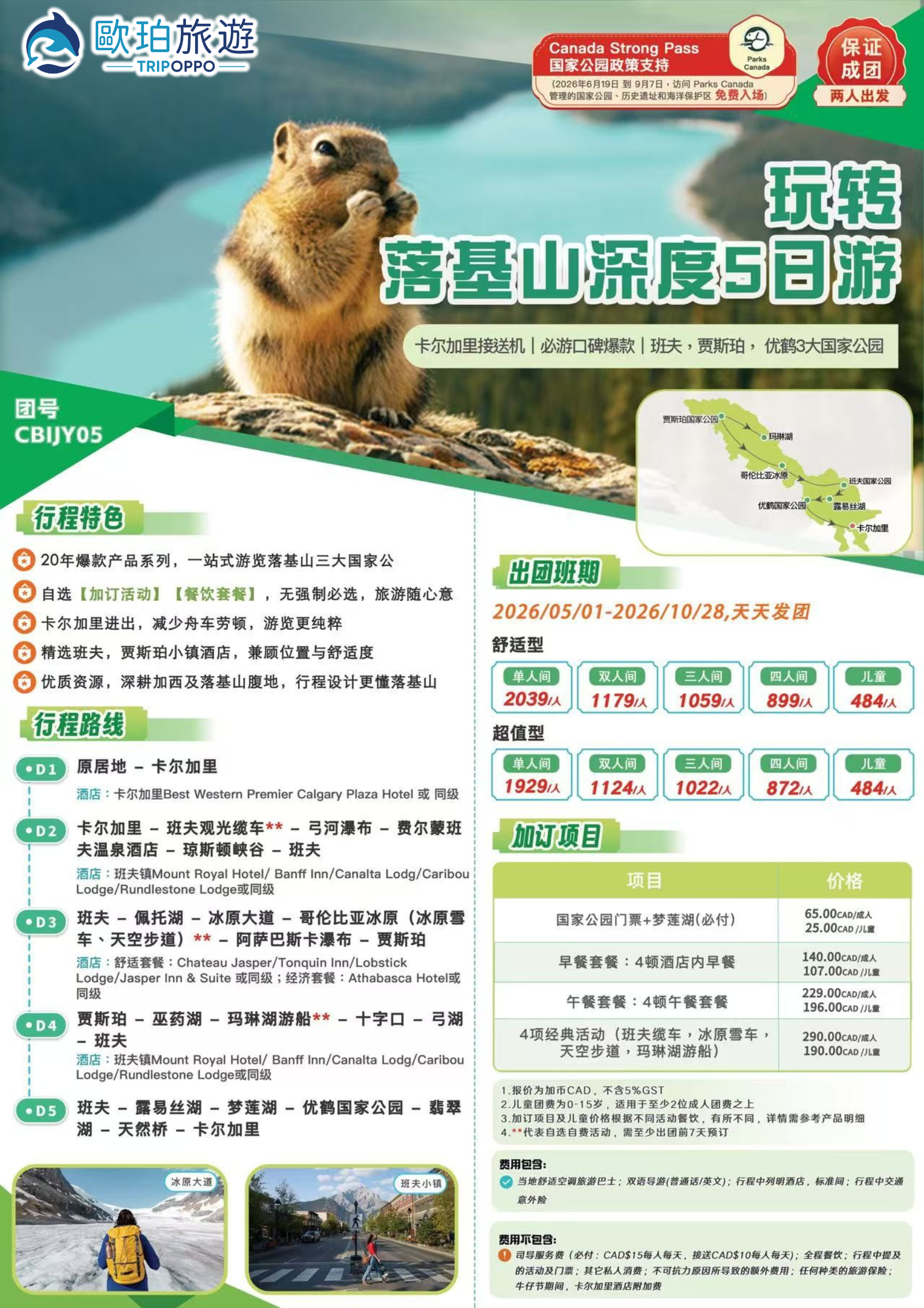 团号:CBIJY05|日期:2026.5.1–10.28(每日发团)|含卡尔加里接送机