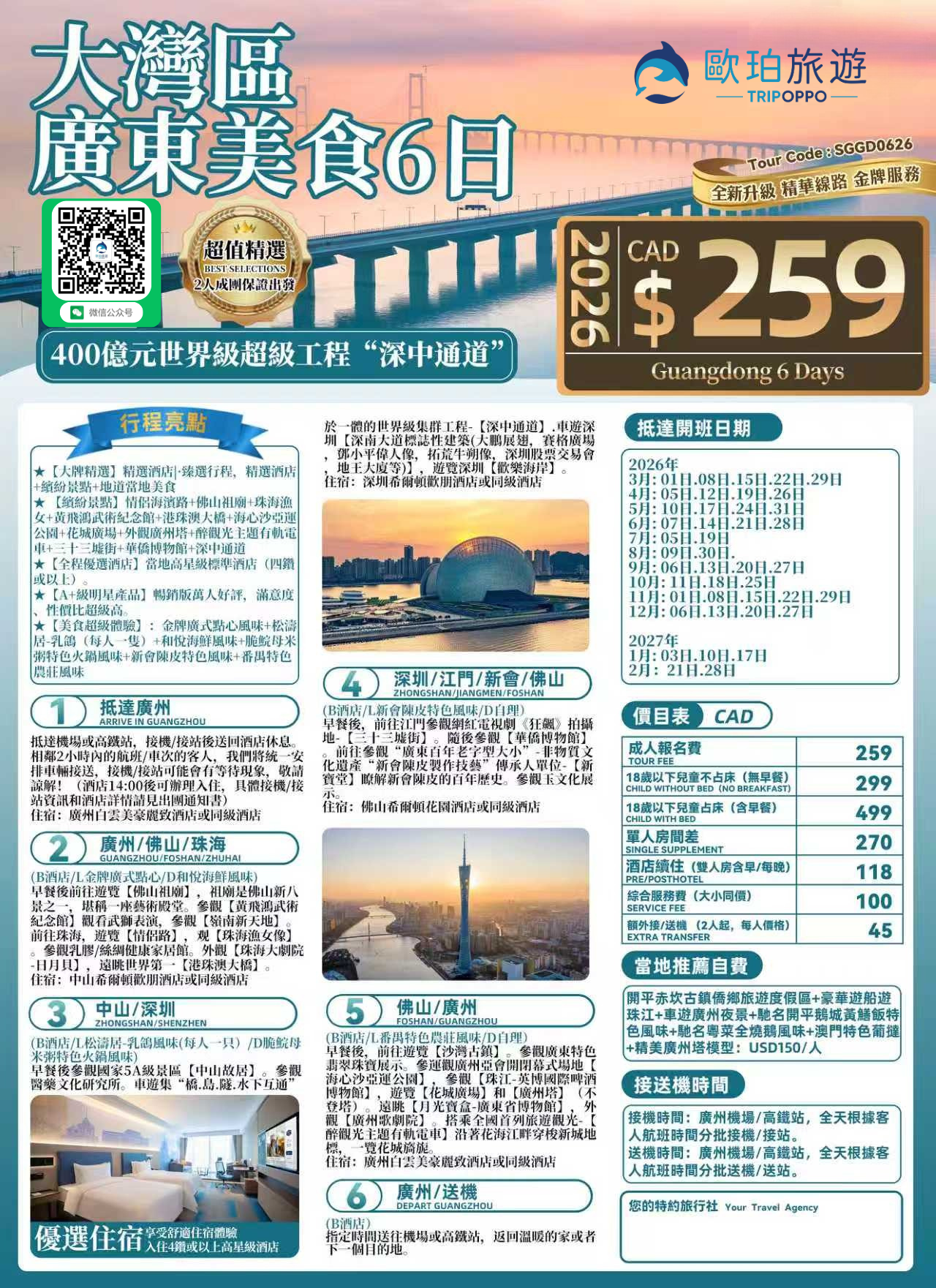 【繽紛景點】情侶海濱路+佛山祖廟+珠海漁女+黃飛鴻武術紀念館+港珠澳大橋+海心沙亞運公園+花城廣場+外觀廣州塔+醉觀光主題有軌電車+三十三墟街+華僑博物館+深中通道