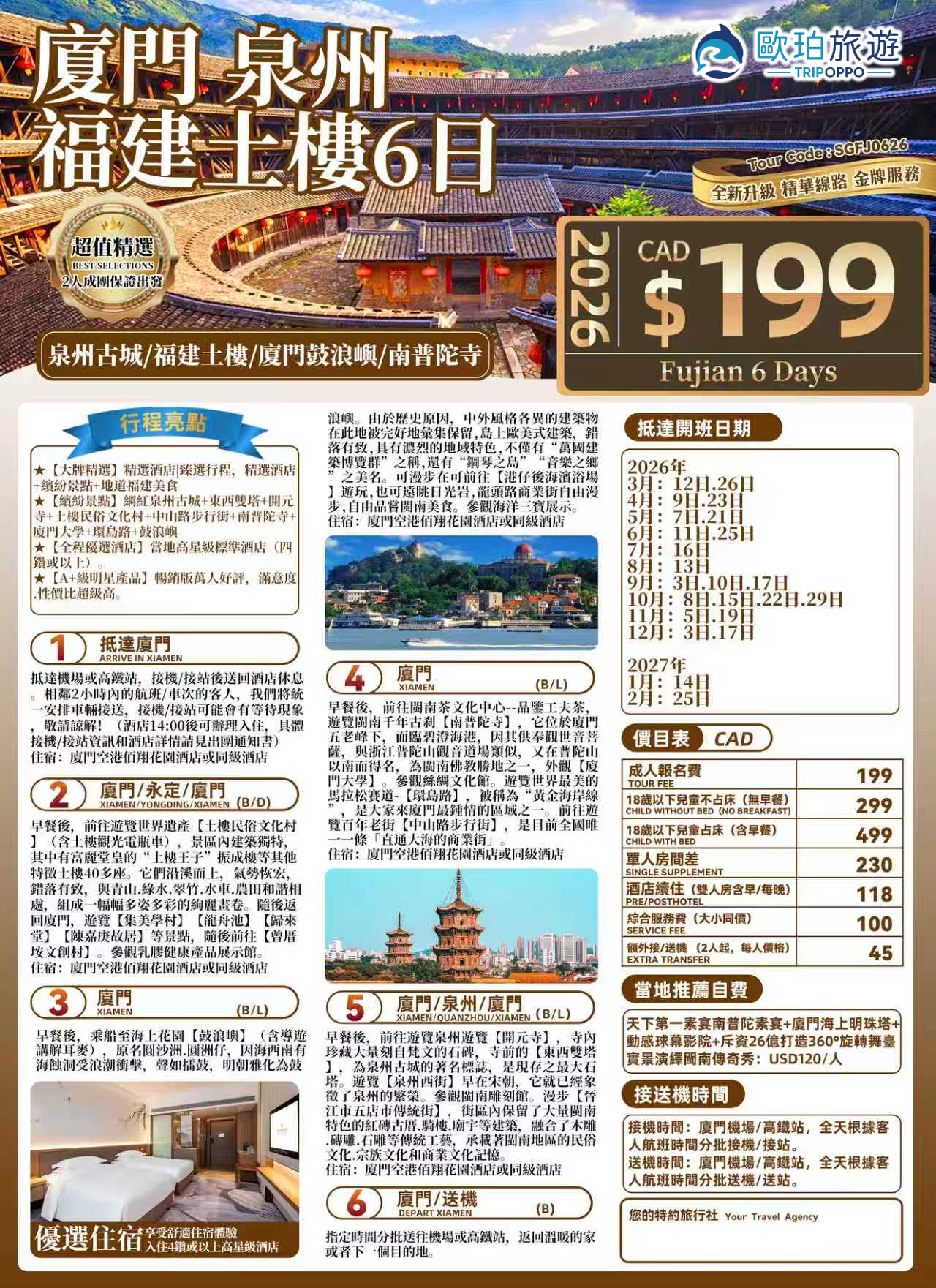 超值 廈門泉州福建土樓6日
