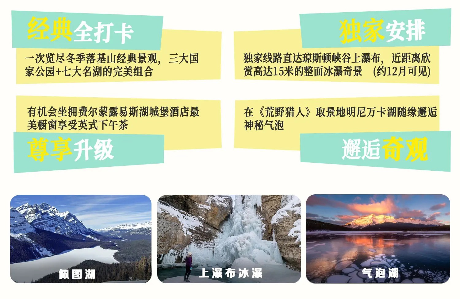 【冬季热卖】【冬季落基山之光】班夫+优鹤+库特尼三大国家公园冬季限定美景+漫步冰原大道+琼斯顿峡谷上瀑布奇观+探索恐龙博物馆,提供冰爪徒步+班夫硫磺山缆车,含卡尔加里免费接送机