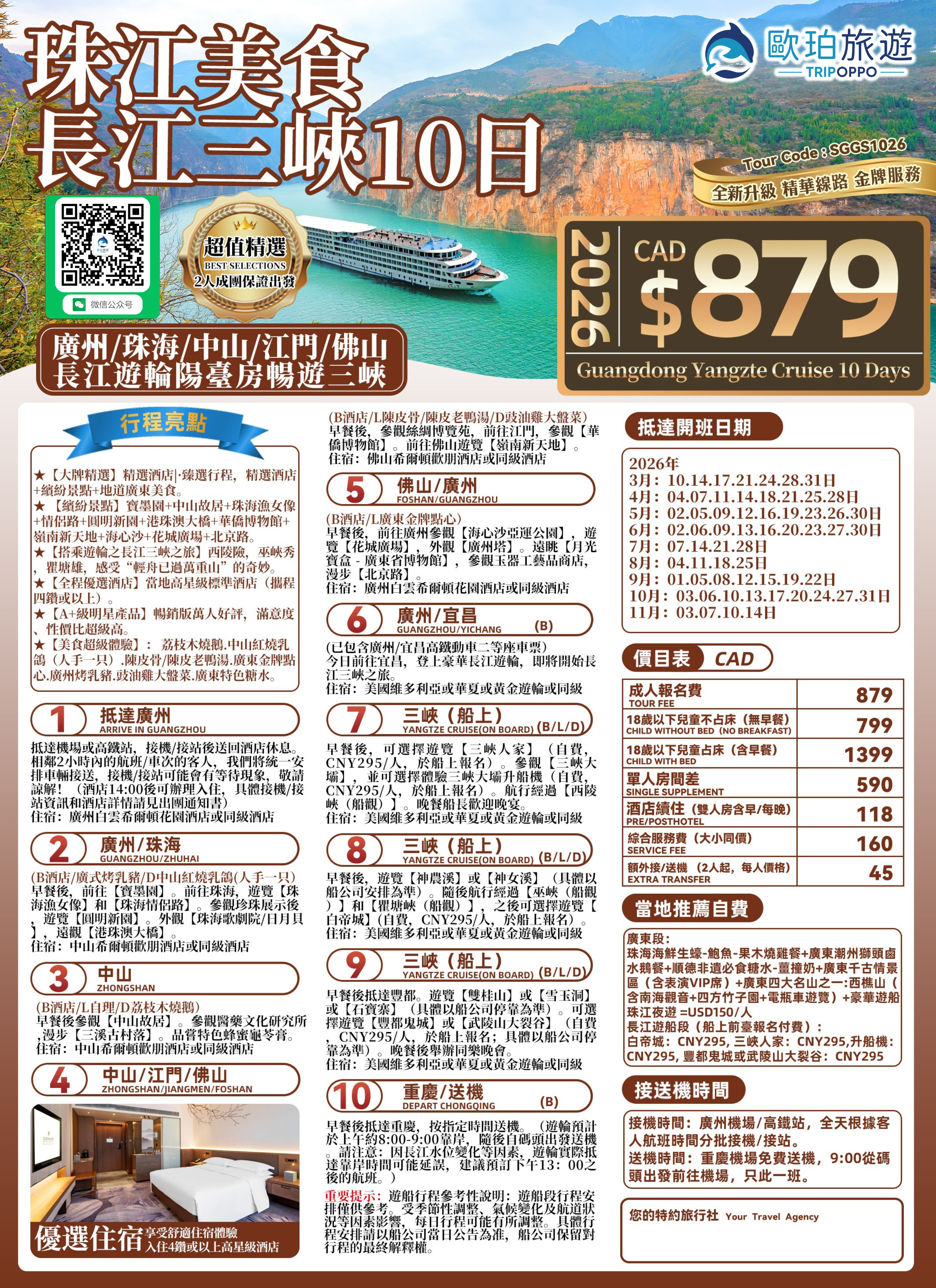 超值 珠江美食 長江三峽10日