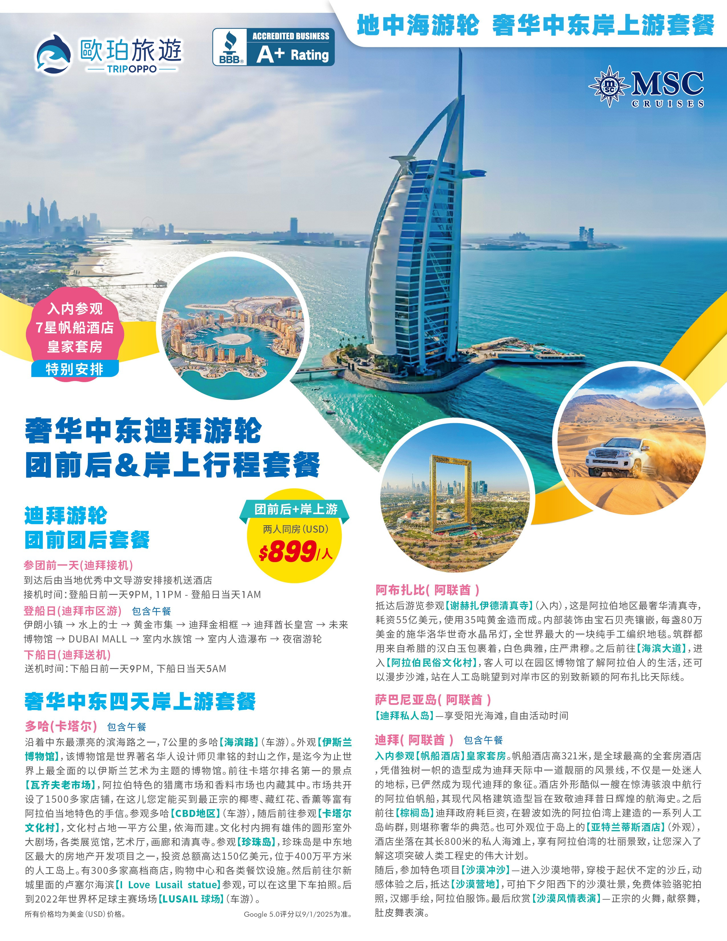 $899/人,两人成团,当地中文导游带团,保证出发!