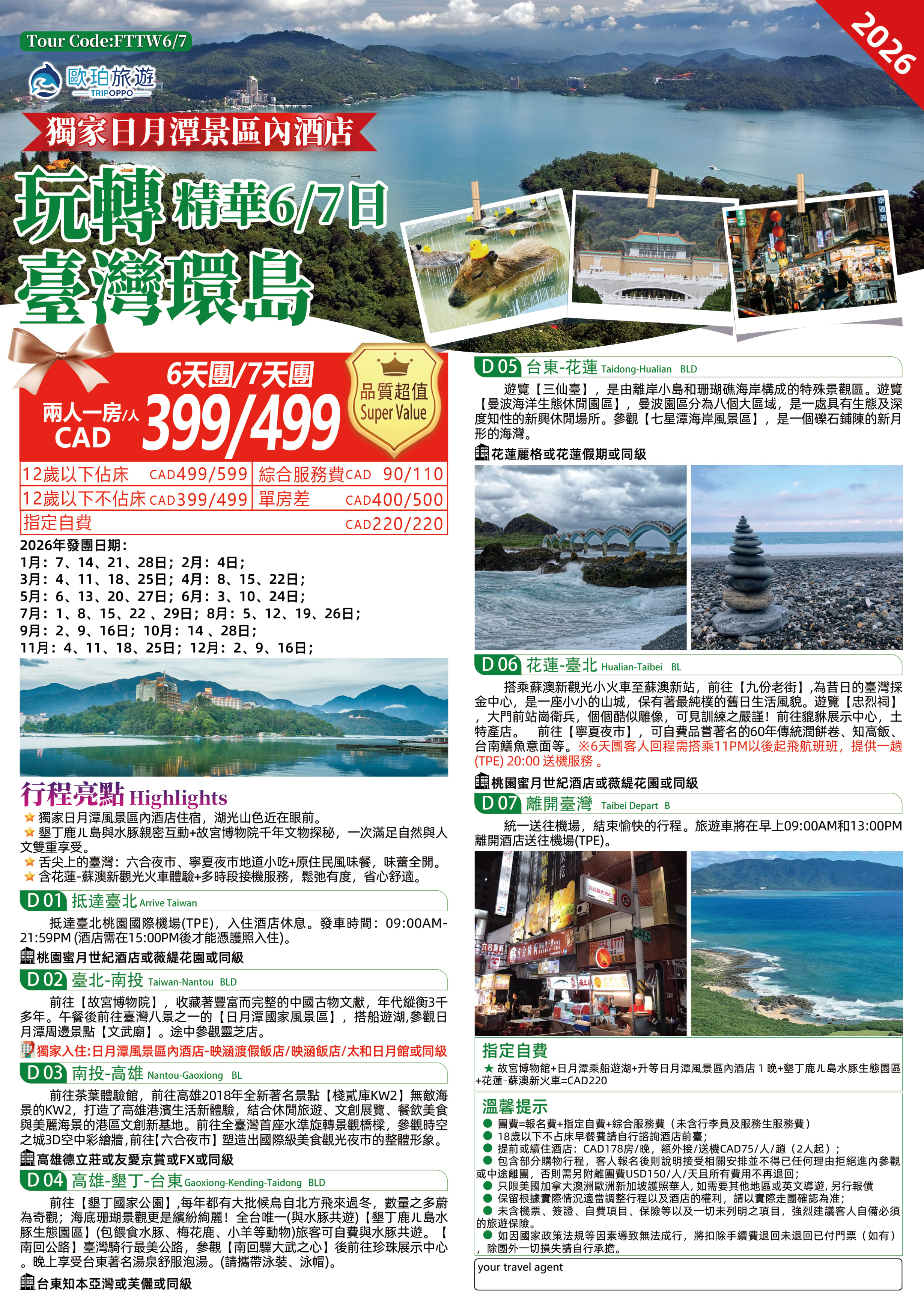詳情請致電:905-604-6488 Email:cntours@tripoppo.com