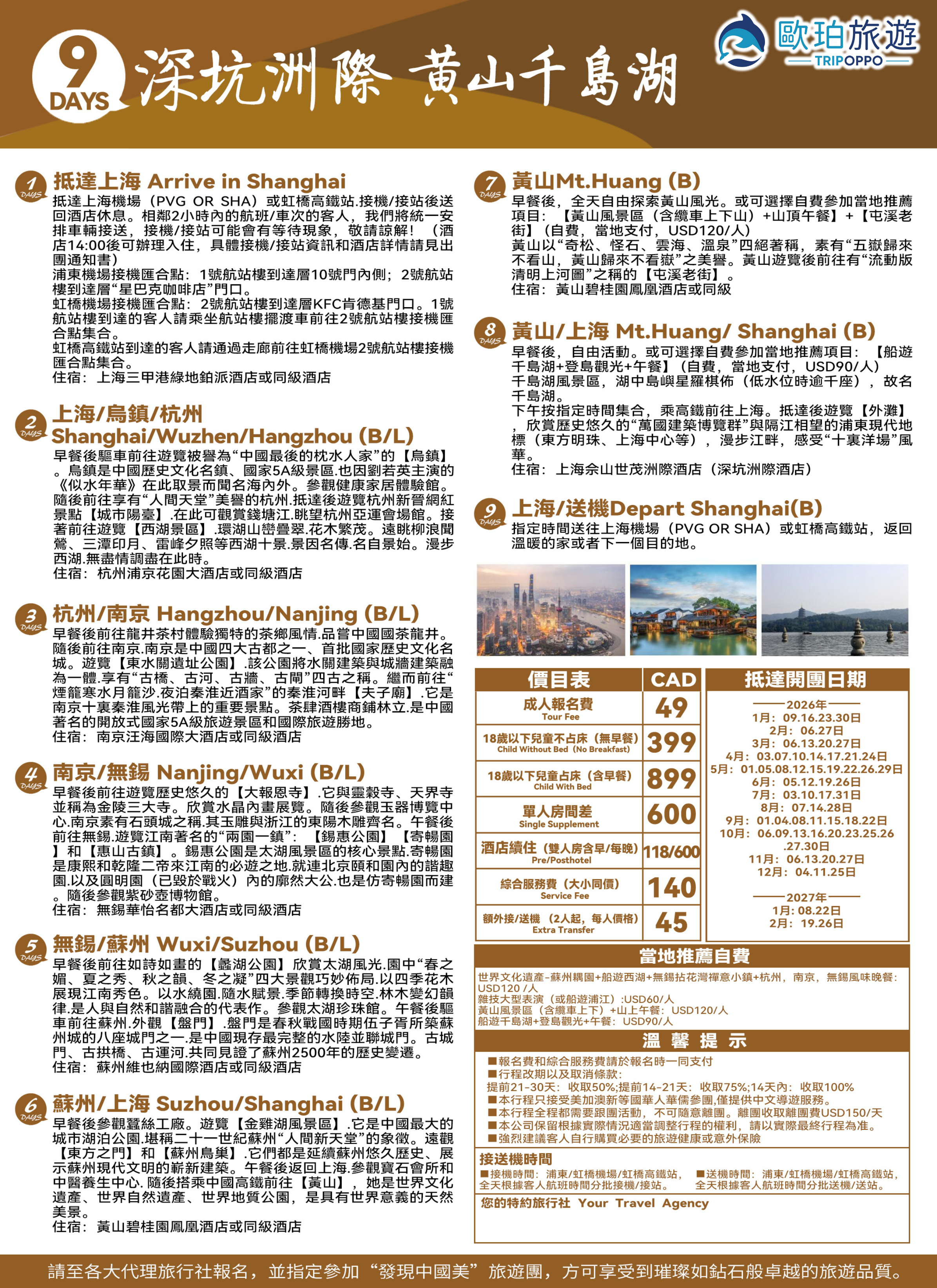 ★【優選行程】黃山風景區,千島湖風景區,烏鎮東柵景區,西湖景區,夫子廟,大報恩寺遺址公園,錫惠公園,寄暢園,惠山古鎮,太湖風景區,,金雞湖風景區,上海灘:各有各的歷史,各有各的風情。