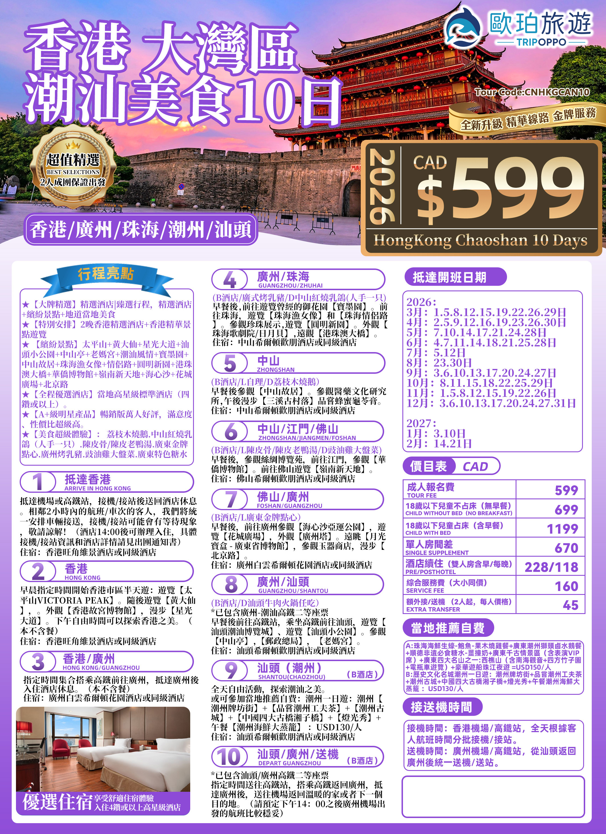 ★ 【繽紛景點】太平山+黃大仙+星光大道汕頭小公園+中山亭+老媽宮+潮汕風情+寶墨園+中山故居+珠海漁女像+情侶路+圓明新園+港珠澳大橋+華僑博物館+嶺南新天地+海心沙+花城廣場+北京路