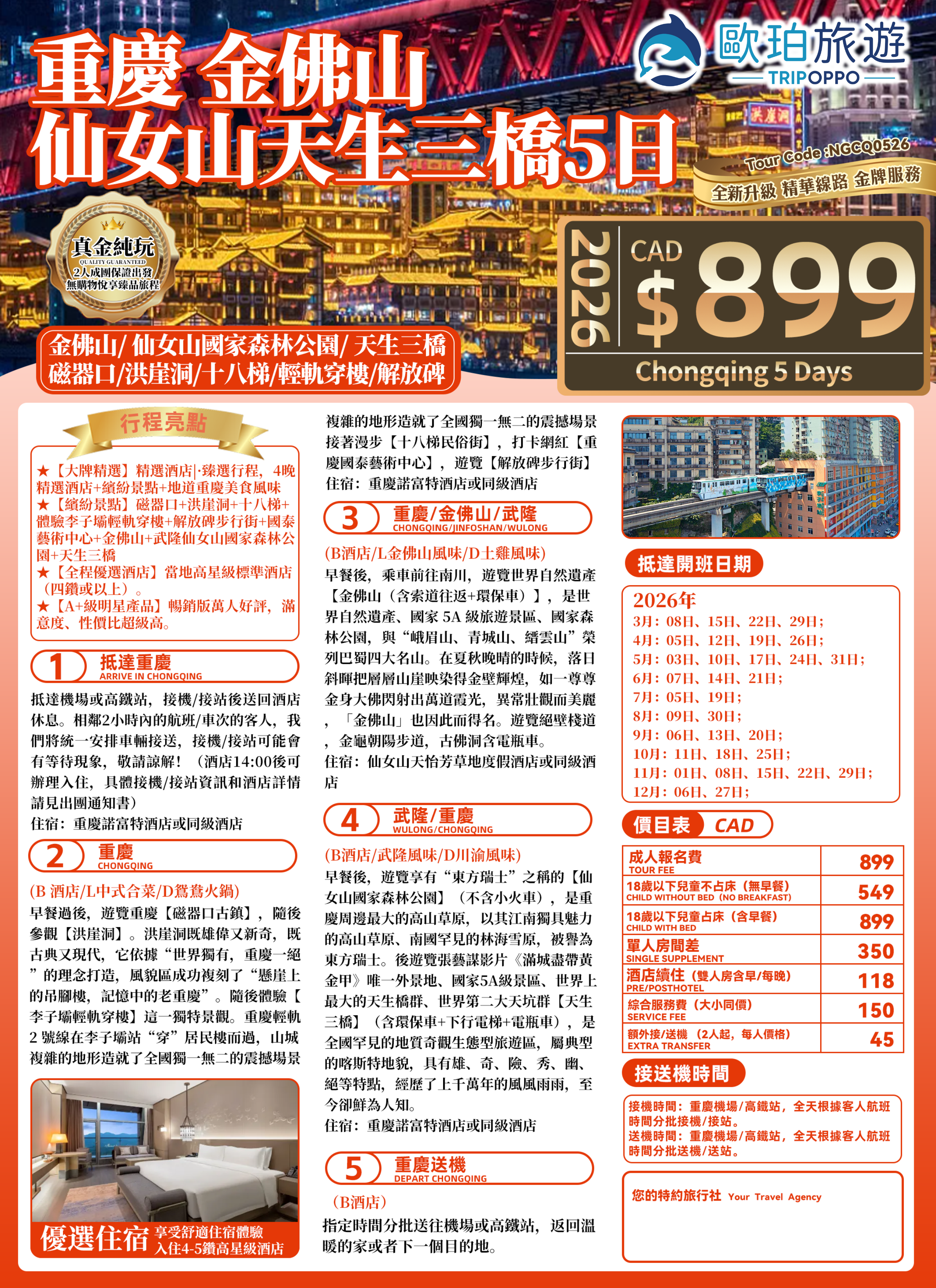 純玩 重慶 金佛山 仙女山 天生三橋5日