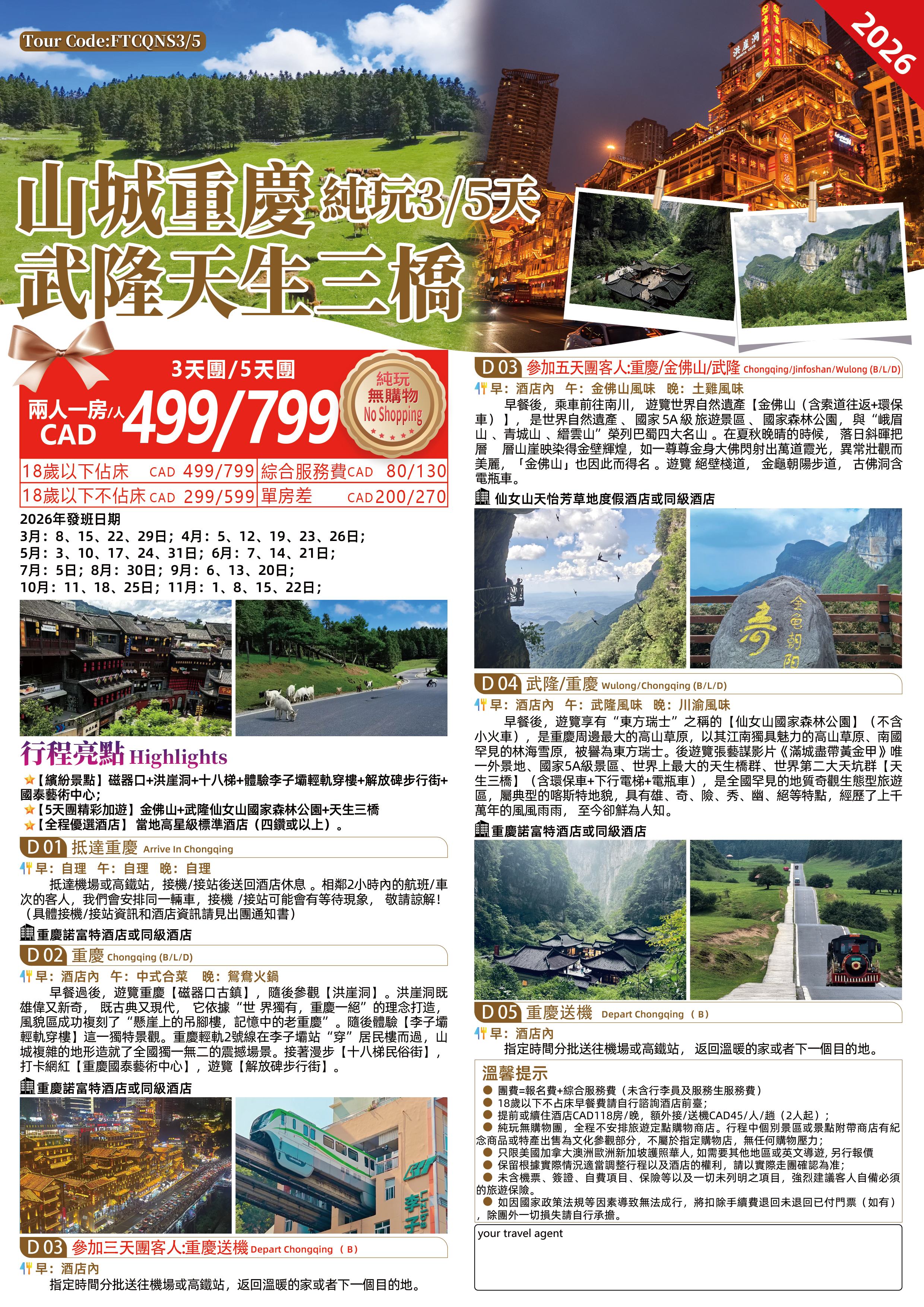 ★ 金佛山+武隆仙女山國家森林公園+天生三橋