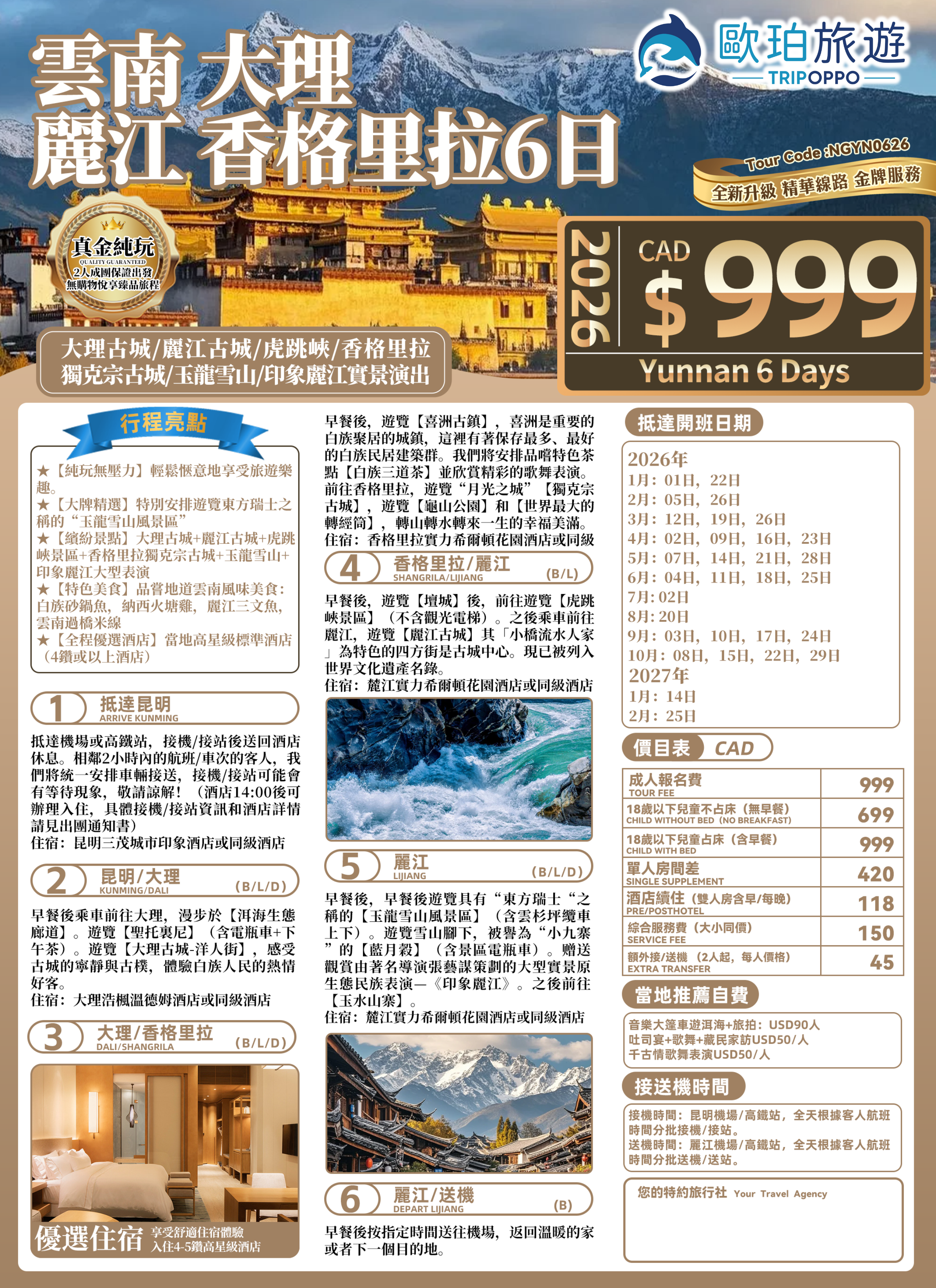 詳情請致電:905-604-6488 Email:cntours@tripoppo.com