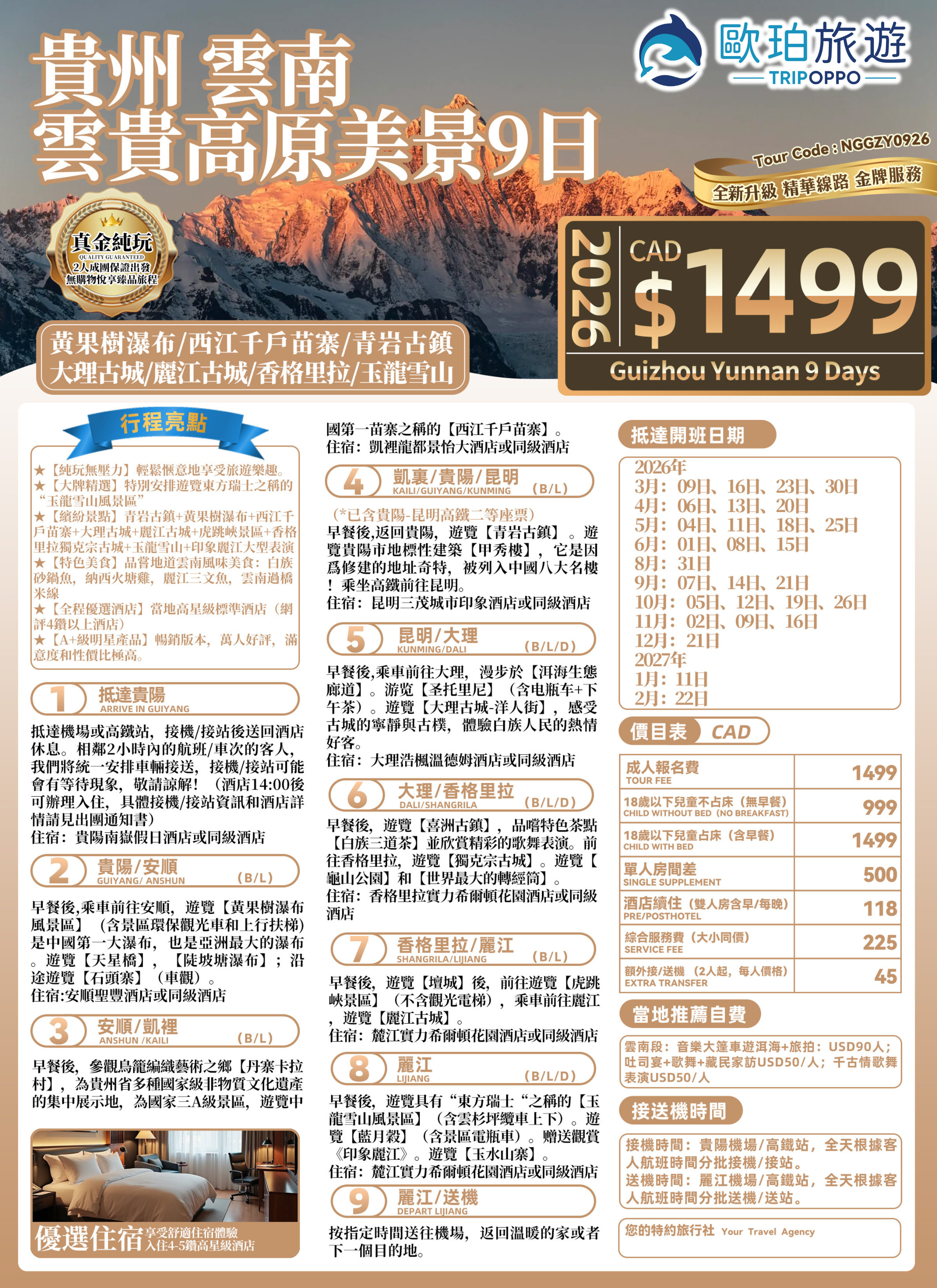 【繽紛景點】青岩古鎮+黃果樹瀑布+西江千戶苗寨+大理古城+麗江古城+虎跳峽景區+松贊林寺+香格里拉獨克宗古城+玉龍雪山+印象麗江大型表演