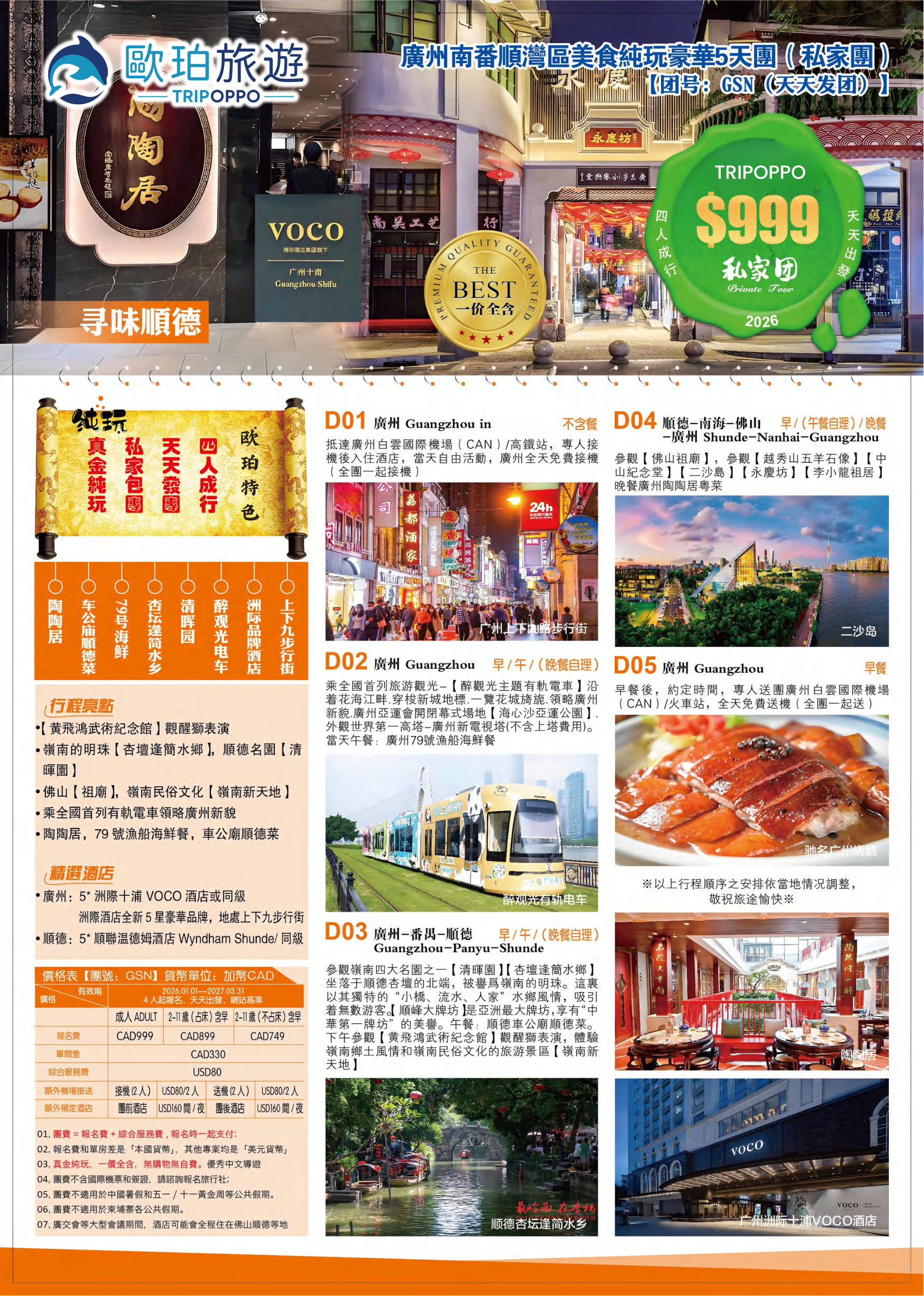私家團 廣州南番顺湾区美食純玩豪華5日