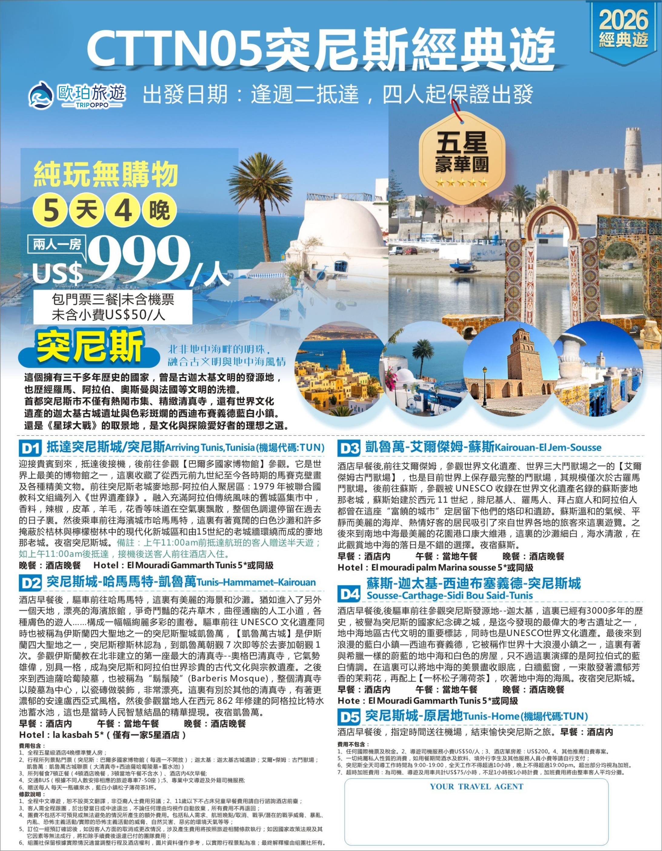 6、突尼斯全天司導工作時間為 9:00-19:00,全天工作不得超過10小時,晚上不得超過19:00pm。超出部分均視為加班。
