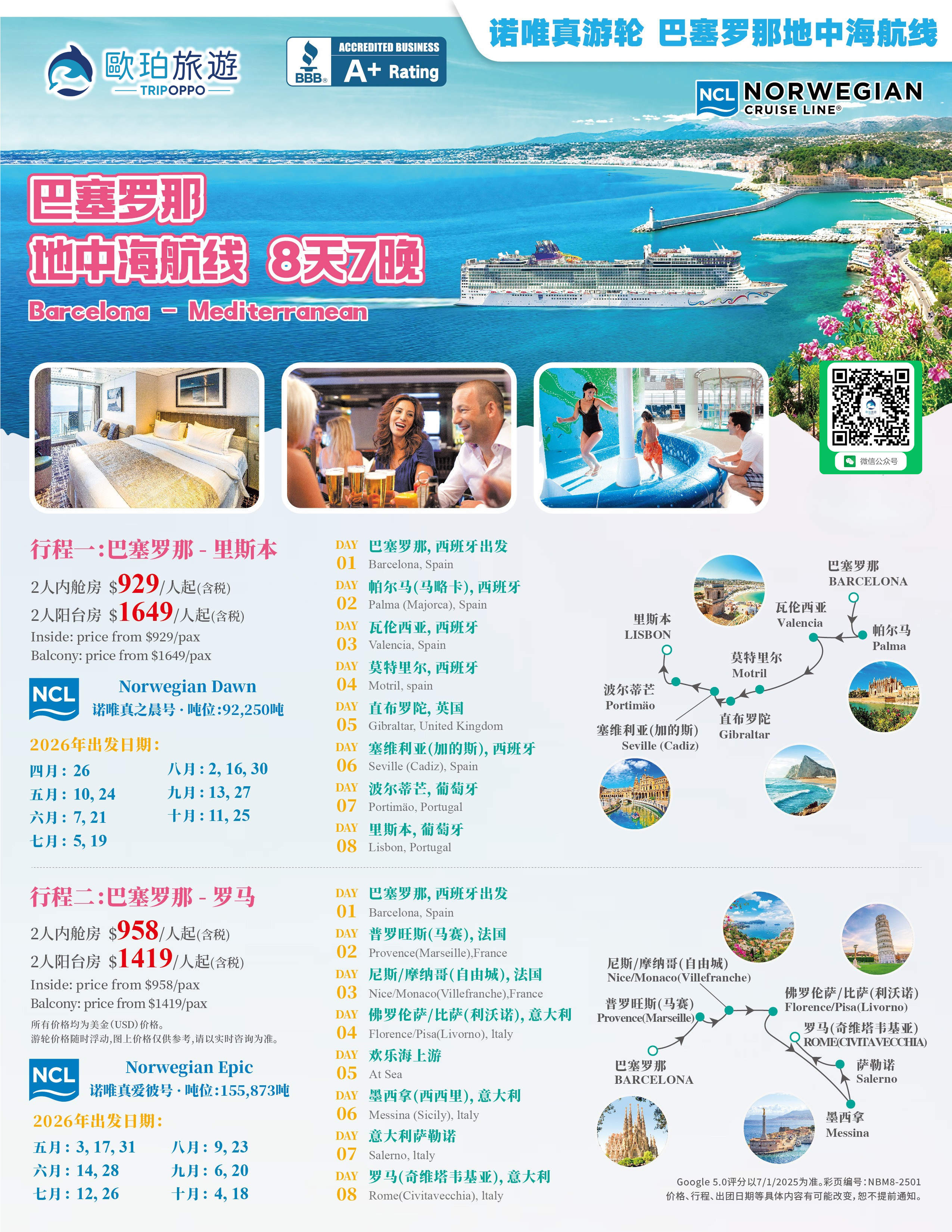 歐洲 巴塞隆納 地中海航線 諾唯真遊輪8天
