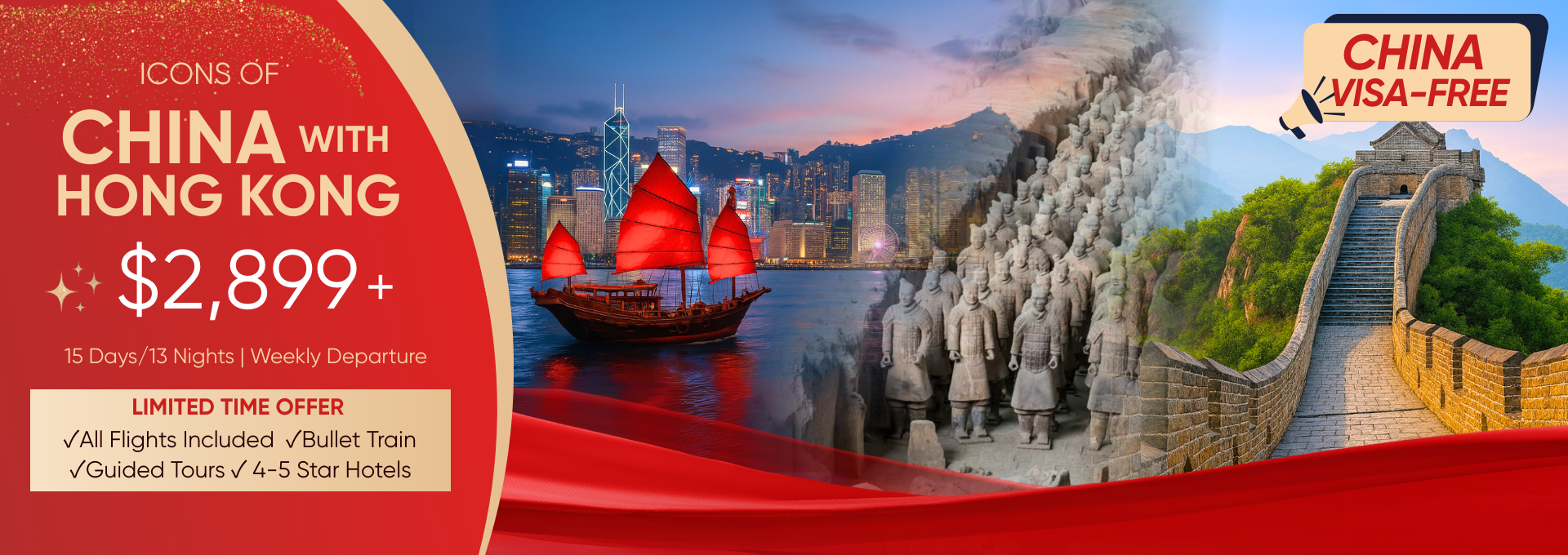 Experience Iconic Highlights Like the Great Wall, Forbidden City of Beijing, Metropolis Shanghai, Terracotta Warriors of Xi’an and Dynamic Hong Kong – All at an Incredible Price