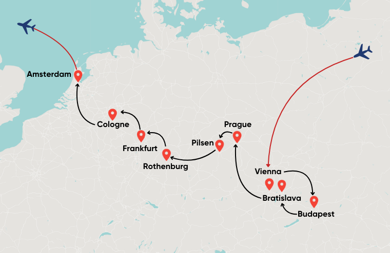 Step into the heart of Europe and experience the magic of Vienna, Budapest, Prague, Frankfurt, and Amsterdam on this unforgettable 10-day journey. From imperial palaces and charming old towns to fairy-tale villages, scenic river cruises, and iconic canals, every day brings new sights, tastes, and adventures. Explore historic streets, enjoy panoramic city tours, cruise along the Danube and Rhine, and immerse yourself in the rich culture of Central Europe.