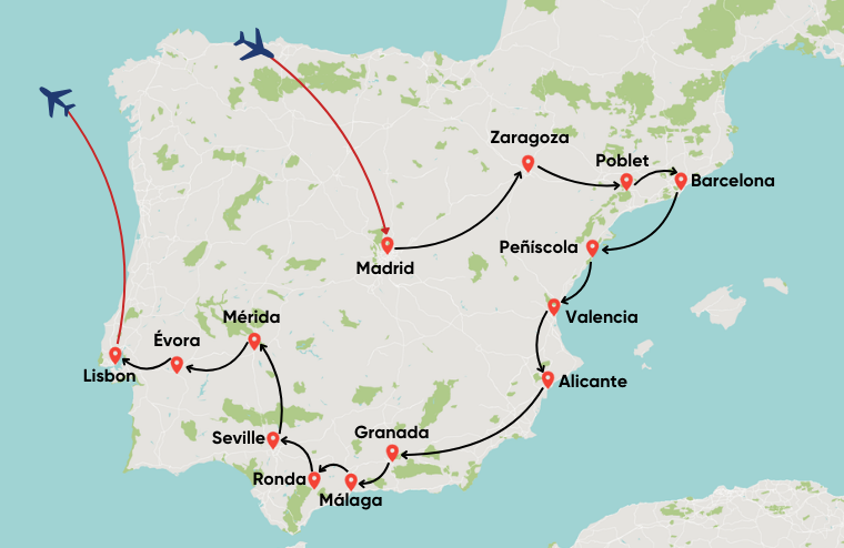 • International Airfare from Toronto-Madrid, Lisbon-Toronto in econormy class.