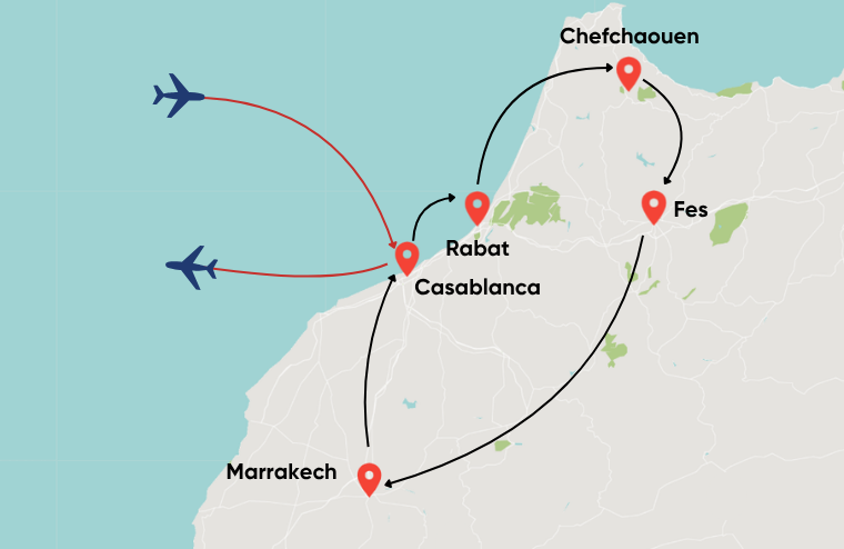 Upon arrival in the colorful city, Casablanca, in the morning. Our tour guide has arranged a city tour for you, including the Mohammed V Square, the city’s administrative seat, and marvel at the massive Hassan II Mosque, dramatically perched on a promontory on the Atlantic. Its indoor and outdoor space can accommodate 105,000 worshippers. In the Habous district, peruse the market and admire the exterior of the Royal Palace. Pass by Rick’s Cafe, followed by a promenade on the Corniche, seaside stunning restaurants and bars area at front of Atlantic. You may enjoy the rest of the day at leisure.