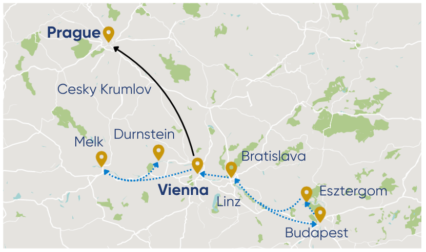 Full board on board. Today we wake up in Dürnstein, a charming village in the heart of the winding Wachau Valley with a medieval castle. From the dock, you can directly access the historic city center on foot, passing through the medieval city gates and reaching Pranger Square. From here, you'll have a beautiful view of the castle ruins, famous for being the place where Richard "the Lionheart" was supposedly imprisoned. Don't miss the opportunity to taste the typical wines of the Wachau region.