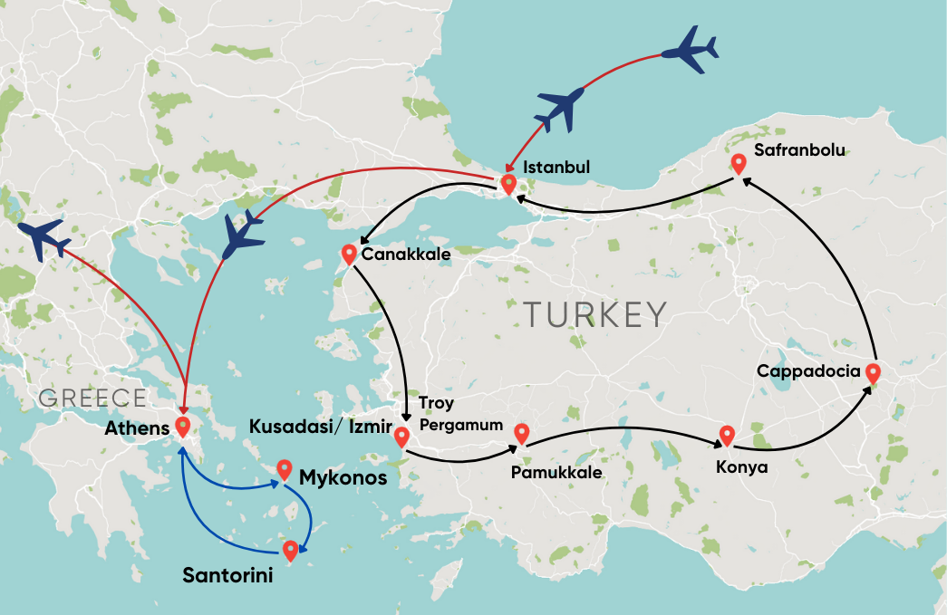 Ancient Greece and Roman Byzantine collided in modern day Turkey, the two great empires leaving behind mesmerizing odes to the earliest Western Civilizations. Ancient cities like Ephesus and Troy vividly unveil a Greco Roman affair. In Istanbul and Athens the heartbeats of two empires stand still, reflected in marbled pillars and resplendent domes that cascade from afar. On this fabulous tour through Turkey and Greece you will find engrossing history and majestic beaches, treasured ruins and breathtaking landscapes. From large cities to charming villages, you will find the remnants of myths, beautiful scenery, and remarkable culture.